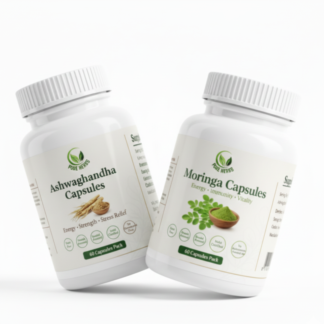 You get Ashwagandha Capsules for stress relief, energy, calmness, and hormone balance — PLUS Moringa Capsules absolutely FREE, packed with essential vitamins, minerals, and antioxidants.